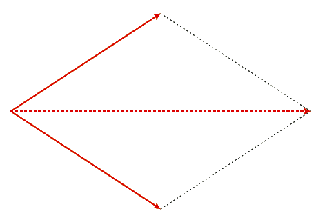 I många fall är inte krafterna parallella men även då måste vi ha en metod att få fram storlek och riktning på de krafter vi är intresserade av. När man adderar två krafter som inte är parallella hamnar resultant kraften någonstans mellan de båda krafterna.