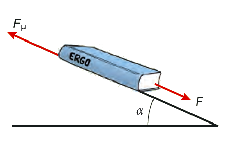 Låt oss nu gå lite djupare och se vad som verkligen händer. Gör gärna försöket själv med några olika föremål mot olika underlag. Du kan till exempel prova med ett suddgummi som får glida på en linjal. Du kommer nog att lägga märke till flera saker. Dels att när suddgummit väl kommer på glid så ökar farten. Det accelererar. Dels att det är nästan omöjligt att få det att glida med konstant fart vid samma lutning. Det kommer att glida ryckvis.